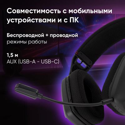 Гарнитура игровая Oklick HS-L750G, для компьютера, накладные, беспроводные/Bluetooth/USB, черный [2007557]